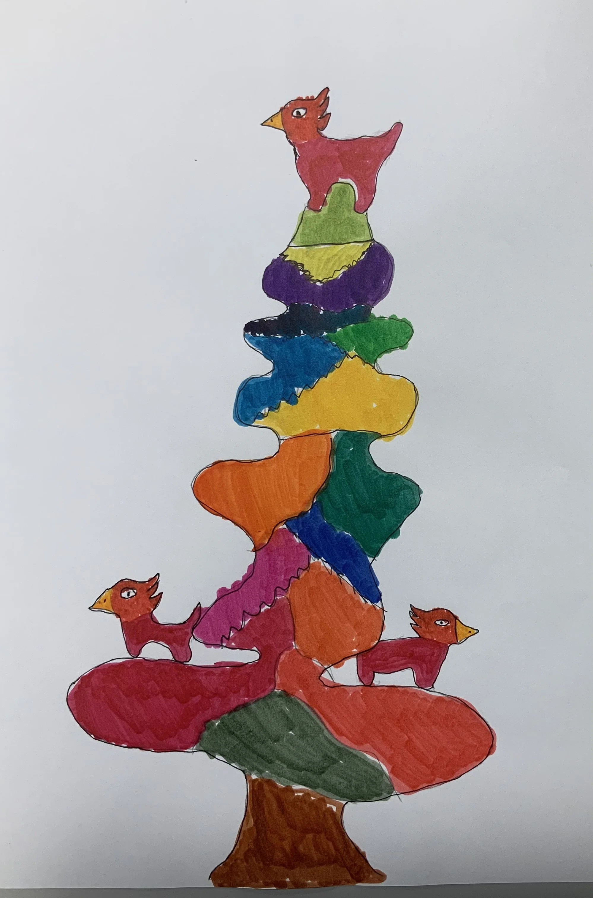 - Jeg ble veldig fascinert over bruken av farger og linjene på treet. Det minnet meg om ekspresjonistisk arbeid, men samtidig var det en subtil og elegant tegning. Det fikk meg til å tenke på den måten barn tegner kunst på, fordi barn tegner med følelser og lek.