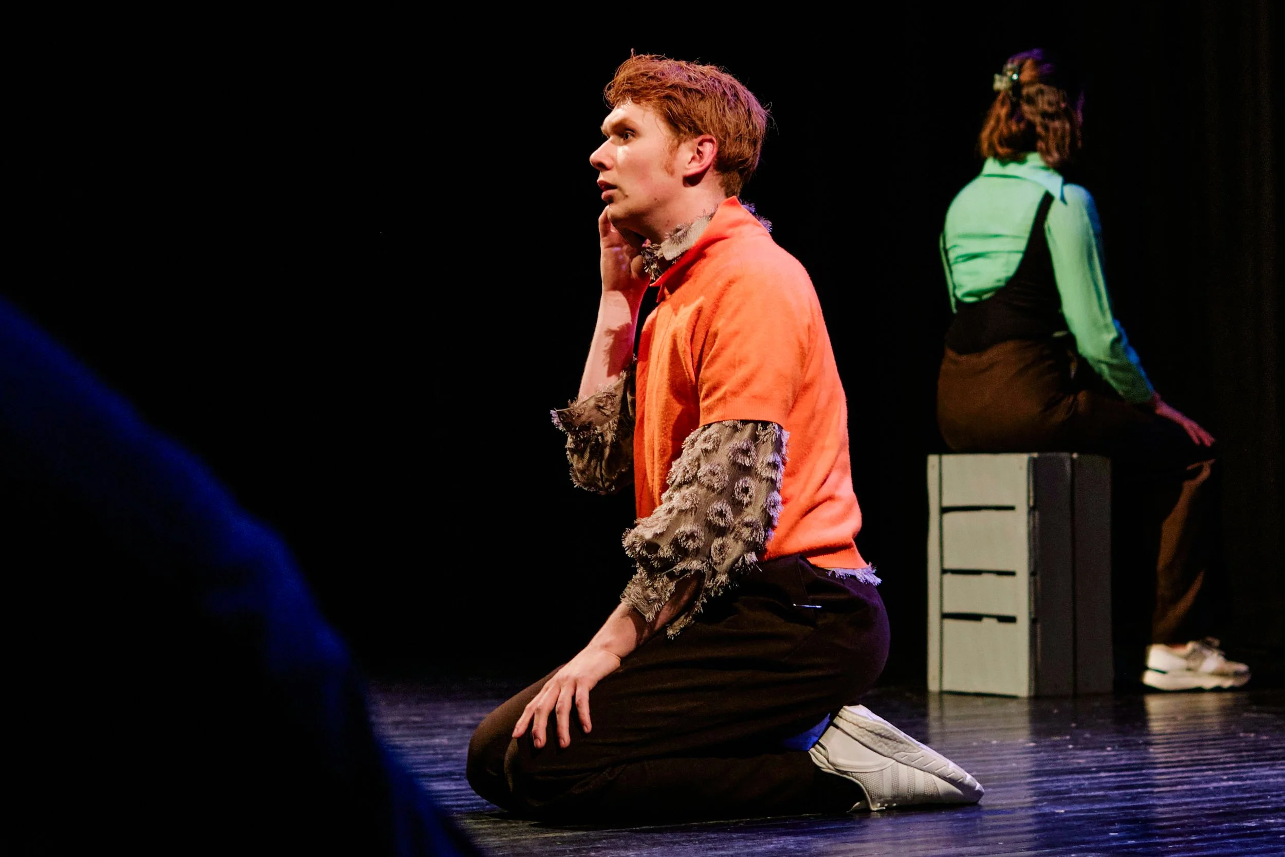Skuespiller Herman Hilde Pedersen som Jesper (23) i hovedrollen i teaterforestillingen. Foto: Thea Louise Mohagen Lekang.